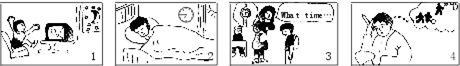 要求:根据所给的四幅图各写一句意思完整、语法准确的话,句子必须包括所给提示词语。