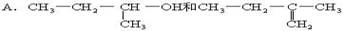 23.某一元醇A发生消去反应,可同时生成互为同分异构体的两物质B和C。已知B的结构为CH2=C(CH3)CH2CH3,则A和C的结构简式应分别为 ( )