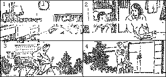 2、下列图画描述的是Lin Tao在一个星期天上午的活动,请根据图画用英语写一段话。须包括图画所表现的主要内容,可适当增删使其连贯完整词数在40个左右。(10分)