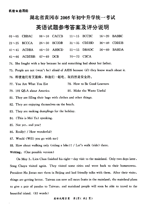 “一湾浅水阻断不了两岸深情,台湾政要开始大陆和平之旅。”假定你是校报小记者,请你就下面新闻背景用英语写一段80词左右的文字报道。