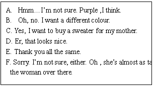 A. How about this grey one? It’s very popular this year. I’m sure she will like it.