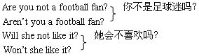反意疑问句是指在陈述句之后附加一个意思与之相反的简短问句,问对方是否赞同的疑问句。附加问句的否定式必须缩写。