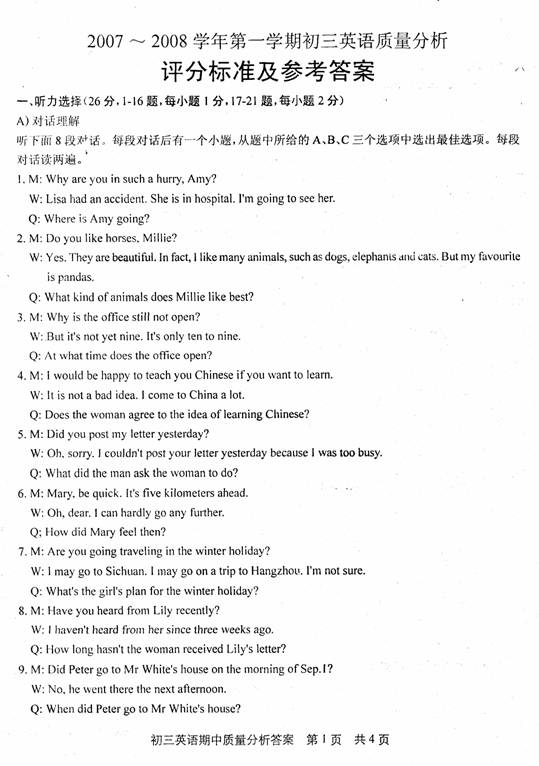 1.A She is not better than She was.B.She is very kind.C.she is ill.