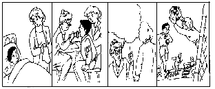 下面有四幅画,请根据图画的背景,在每个空格内填上一词,使短文完整正确。