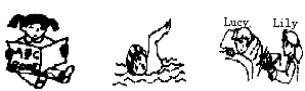 看图填词:根据画面显示的内容,在各幅图旁的句子或短文的横线上填入适当的词,一空一词。
