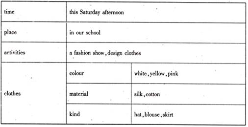 请根据下面表格提供的信息,以“My design”为题写一篇短文。词数为80左右。