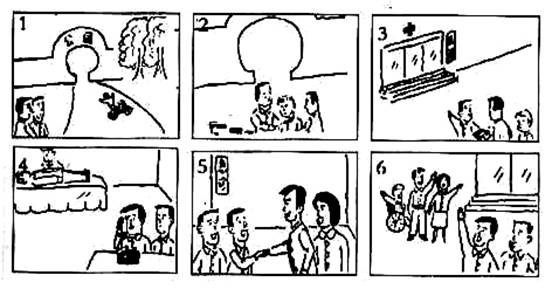 C.下面六幅图描述了十月九日星期三早晨你所经历的一件事。请根据这些图画,用英语写一篇日记。 (15分)
