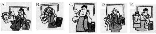 (看图,猜一猜图中的人在电话里都说了些什么?然后将图画与相应的图配对。)