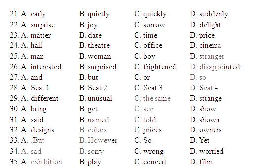 Why? What’s the matter with all this? While they were wondering, suddenly the woman said, “The 32 of the tickets are different.” 33 they looked at the tickets more carefully. After a while my father said, “Oh, I am 34 , I made a mistake. My ticket is for the 35 a month ago. Take this seat, please.” With these words, he left.