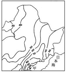 读东北地区年降水量分布图(单位:mm),完成19-21题。