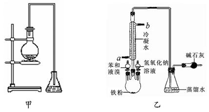 (10分)下图甲是实验室旧法制取溴苯的装置,乙是新设计的改进装置。