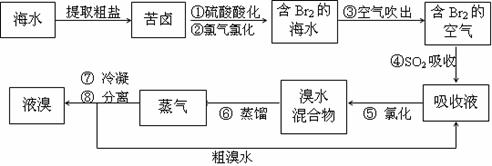 (6)步骤①、②之后并未直接用“含Br2的海水”进行蒸馏得到液溴,而是经过“空气吹出”、“SO2吸收”、“氯化”后再蒸馏,这样操作的意义是