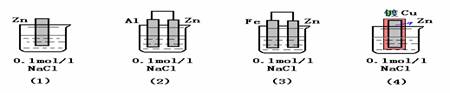 4、下列装置中四块相同的Zn片,放置一段时间后腐蚀速率由慢到快的顺序是( )