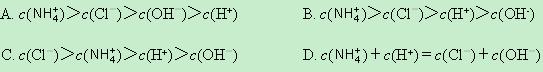 20. .某氨水的pH=X,某盐酸的pH=Y,已知X+Y=14,将上述氨水与盐酸等体积混合后,所得溶液中各种离子浓度的关系正确的是 ( )