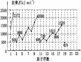 21.(4分)元素周期表中前20号元素的第一电离能如图所示。试根据元素在周期表中的位置,分析表中曲线的变化特点,并回答下列问题。