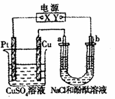 25.在如右图所示的装置中,a、b都是惰性电极,通电一段时间后,b极附近的溶液首先变红,则下列说法正确的是( )