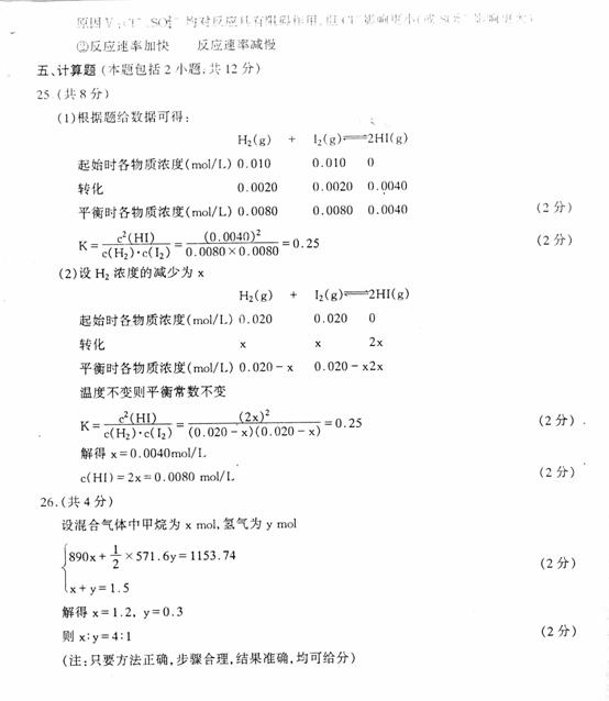 (2)在上述温度下,将H2和12各0.20mol的气态混合物充入该密闭容器中,试求达到平衡时HI的物质的量浓度。