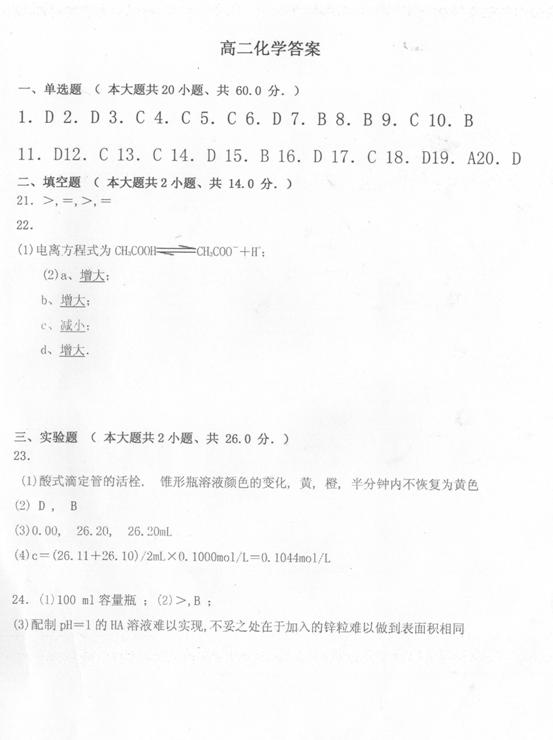 23.(14.0分)某学生欲用已知物质的量浓度的盐酸来测定未知物质的量浓度的氢氧化钠溶液时,选择甲基橙作指示剂,请填写下列空白: