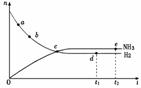 2NH3(g)(正反应为放热反应),673K、30MPa下n(NH3)和n(H2)随时间变化的关系如下图所示。下列叙述正确的是 ( )