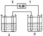 28.(6分)如图所示装置,X、Y为电源的两极,a、b均为石墨电极,c为铜电极,d为铁电极,A槽中盛装饱和食盐水,B槽中盛装CuCl2溶液。通电一段时间后,发现d电极上覆盖一层红色物质。