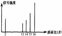 (10-9g)化合物通过质谱仪的离子化室使样品分子大量离子化,少量分子碎裂成更小的离子。如C2H6离子化后可得到C2H6+、C2H5+、C2H4+…,然后测定其质荷比。某有机物样品的质荷比如下图所示(假设离子均带两个单位正电荷,信号强度与该离子的多少有关),则该有机物可能是: