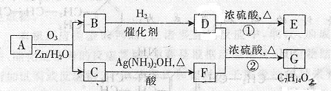 一种链状单烯烃A通过臭氧化并经锌粉和水处理得到B和C;化合物B含碳69.8%,含氢11.6%,它不能发生银镜反应;D在浓硫酸的存在下加热,可得到能使溴水褪色且只有一种结构的物质E。其转化关系如下: