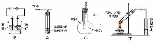 C.装置丙:验证HCl气体在水中的溶解性 D.装置丁:实验室制取乙酸乙酯