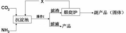 ② 煅烧炉中产生的固态副产品为 ,生产流程中能被循环利用的物质X为 。