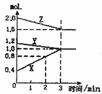 22.(6分)某温度时,在2L密闭容器中,X、Y、Z三种物质的物质的量随时间变化的曲线如右图所示,由图中数据分析: