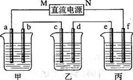 30.(12分)下图所示装置中,甲、乙、丙三个烧杯依次分别盛放100g 5.00%的NaOH溶液、足量的CuSO4溶液和l00g 10.00%的K2SO4溶液.电极均为石墨电极。