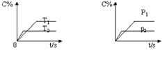 pC(g)在不同温度(T)、压强(P)下,生成物C的质量分数C%的变化情况。下列关于该正反应热效应及方程式中A、B、C的化学计量数的判断中,正确的是