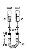 (2)如将注射器甲中的气体换成NH3、U形管中的CCl4换成水,仍在常温下,打开两个