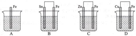 7.如图所示,各容器中均盛有海水,铁在其中被腐蚀时,由快到慢的顺序是( )