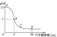 mol·L-1甲酸溶液,溶液pH和加入的甲酸的体积关系曲线如图所示,有关粒子浓度大小关系正确的是( )