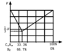 3、某烃CnHm在一定条件下与H2反应,取不同体积比的CnHm与H2作以上实验(总体积为V),右图中横轴表示CnHm与H2占投料总体积的百分率,据图分析,m、n的关系为