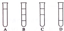 10、将等体积的苯、汽油和水在试管中充分混合后静置。下列图示现象正确的是:( )