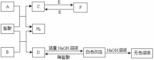25.(6分)下列物质A~F是我们熟悉的单质或化合物,其中A、B均是常见的金属,且A的合金用量最大;E在常温下是黄绿色气体;在适当的条件下,它们之间可以发生如下图所示的转化。
