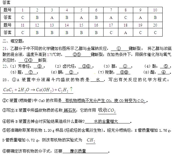 21、乙醇分子中不同的化学键如右图所示
