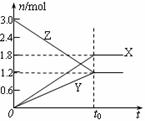 反应,t0时容器Ⅰ中达到化学平衡,X、Y、Z的物质的量的变化如图所示。则下列有