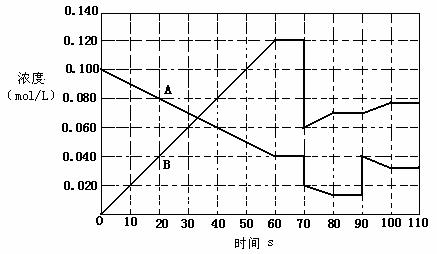 (4)373K时,在一密闭容器中,将A气体放入进行反应,据图判断,80-90s内反应向哪个方向移动___________(填“向左”、“向右”、“不移动”),90s时曲线变化的原因是(用文字表达)_________________________,反应进行到70s时,改变的条件可能是(填编号)_____________________