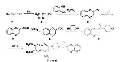 (4)由F制备多沙唑嗪的反应中要加入试剂X(C10H10N3O2Cl),X的结构简式为 。