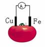 19、右图为铁铜水果(呈酸性)电池的示意图,下列说法正确的是