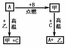 28、A、B、C是中学化学中常见的单质。其中金属元素A有可变化合价,甲、乙两化合物在常温下分黑色晶体和无色液体.这些化合物和单质之间的关系如下图所示.据此推断: