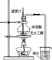 某化学小组用右图所示装置进行探究实验。当温度迅速上升后,可观察到试管中溴水褪色,烧瓶中液体呈棕黑色。