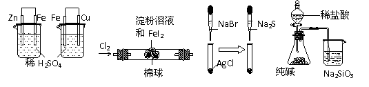 左烧杯中铁表面有气泡,右边烧杯中铜表面有气泡 |