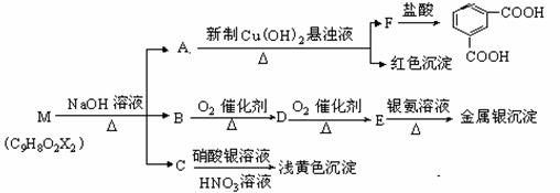 现有分子式为C9H8O2X2(X为一未知元素)的物质M,可在一定条件下发生上述一系列反应