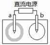 取一张用饱和NaCl溶液浸湿的pH试纸,两根铅笔芯作电极(石墨),接通直流电源,一段时间后,发现a电极与试纸接触处出现一个双色同心圆,内圆为白色,外圈呈浅红色。则下列说法错误的是