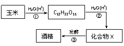 20.(8分)能源紧缺、替代能源、绿色能源是当今社会能源面临的新问题。将玉米经深加工提炼出酒精,再与汽油按一定比例混合成乙醇汽油,在我国正得到广泛的应用。乙醇汽油正逐步成为新的替代能源。以玉米(主要成分是淀粉)为原料提炼酒精的过程如下: