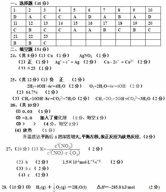 24、(8分)依据氧化还原反应:2Ag+(aq)+Cu(s) = Cu2+(aq)+2Ag(s)设计的原电池如图所示。请回答下列问题: