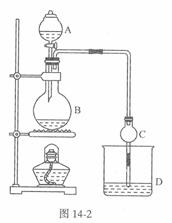 (12分)某课外小组设计的实验室制取乙酸乙酯的装置如图14-2所示,A中放有浓硫酸,B中放有乙醇、无水醋酸钠,D中放有饱和碳酸钠溶液。